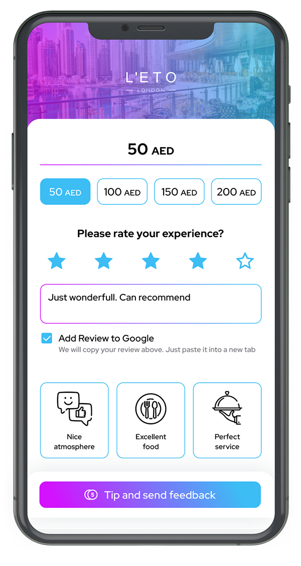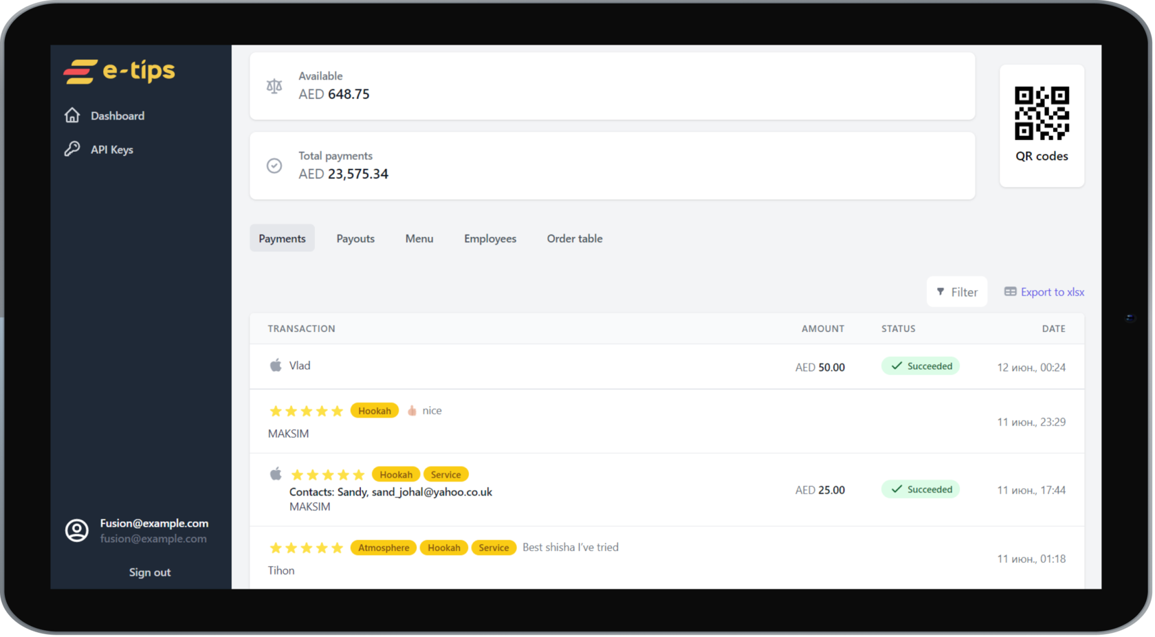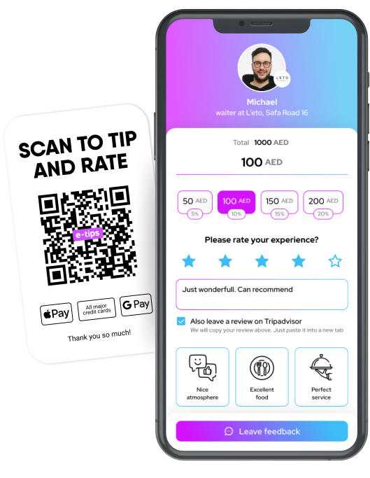 For individual tips each employee would have his personal account, where he will see all transactions and all tips and reviews from own accounts. For pooled tips, it drops into a central point, you will have to notify your team, then share money among them